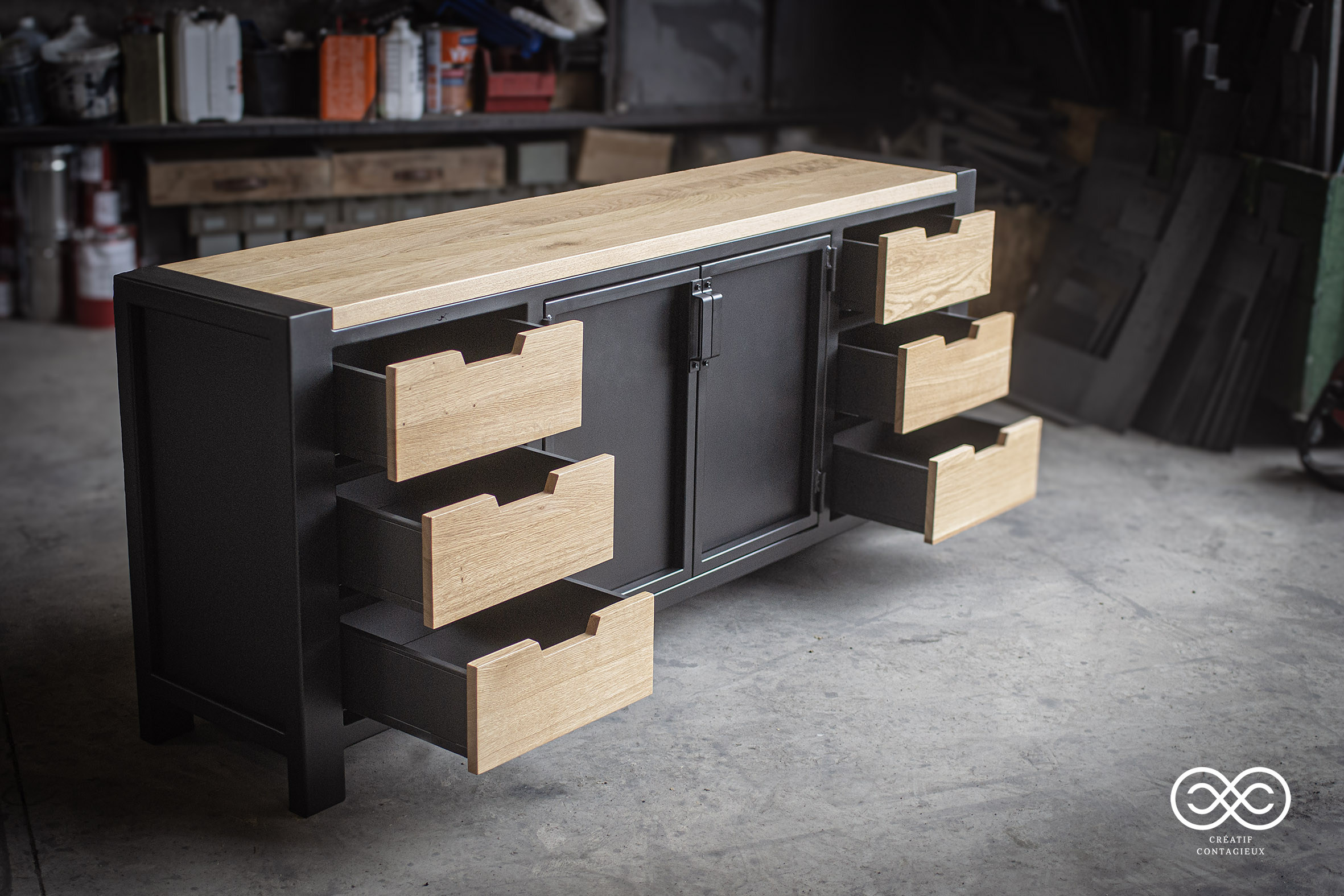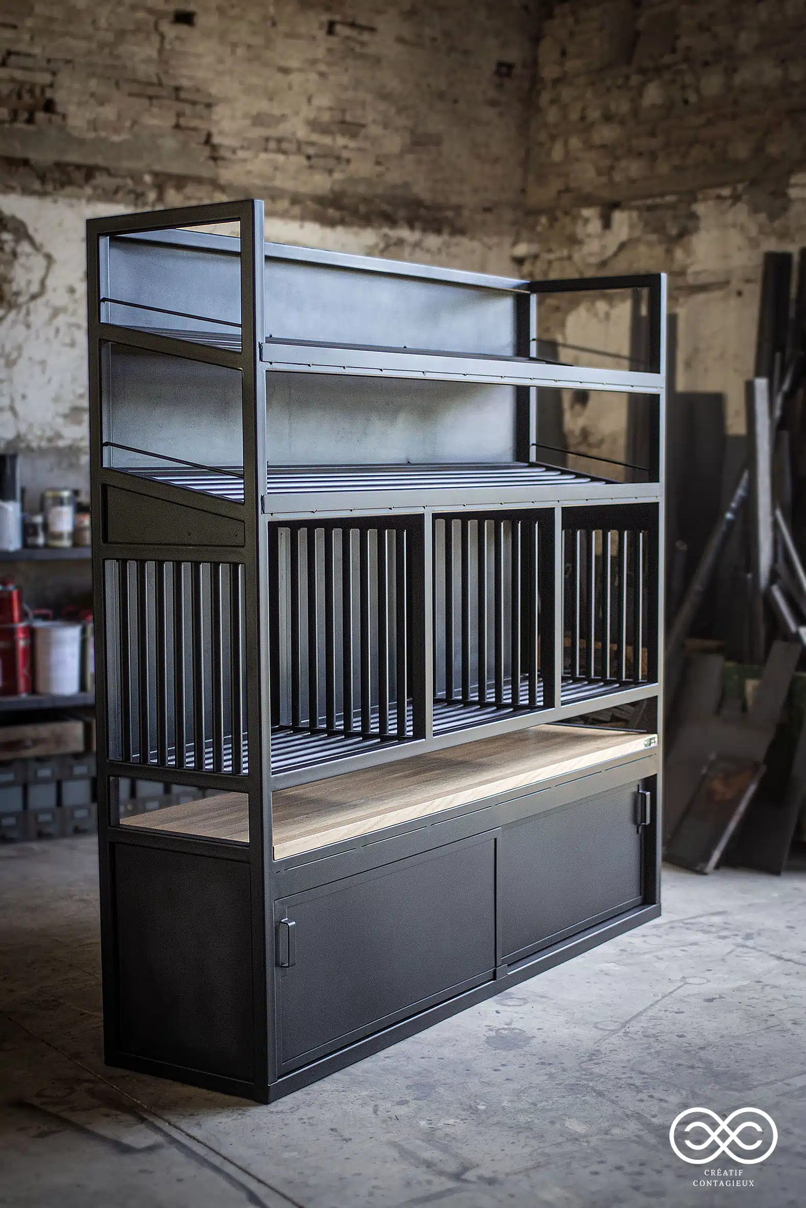 Table industrielle, bibliothèque industrielle, dessertes métal et bois, bar ou comptoir industriel, aménagement de restaurants, aménagement de salles de sport, vestiaires métalliques, tables basses sur mesure, meubles TV industriels, restauration et transformation de meubles anciens, établis de menuisiers, enfilades et buffets industriels, mange debout, bureau industriel, verrières, table epoxy, braseros… il y a forcément une création métal et bois faite pour vous !